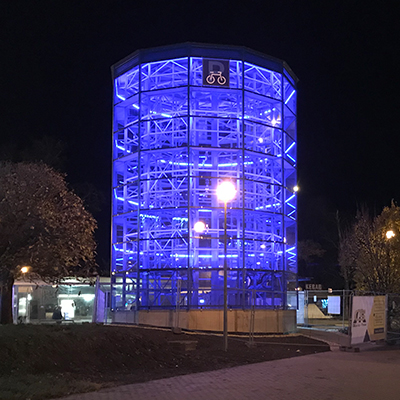 Wieża rowerowa BIKETOWER – samoobsługowy system przechowywania rowerów to robot przemysłowy spełniający funkcję nowoczesnej wiaty rowerowej. Wewnątrz wieży rowerowej rowerzyści mogą przechowywać swoje rowery w bezpiecznym i suchym środowisku bez dostępu innych osób. Rower nie pada deszczem ani nie jest zakurzony i jest cały czas monitorowany przez system kamer.